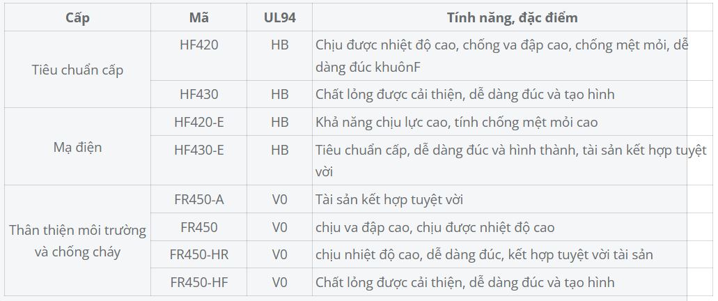– Độ cứng cao, độ bền cao, kích thước ổn định, có tính ổn định nhiệt, bavia ít, ít mùi, thích hợp dùng trong các bánh răng xe hơi, giá kiếng xe hơi.